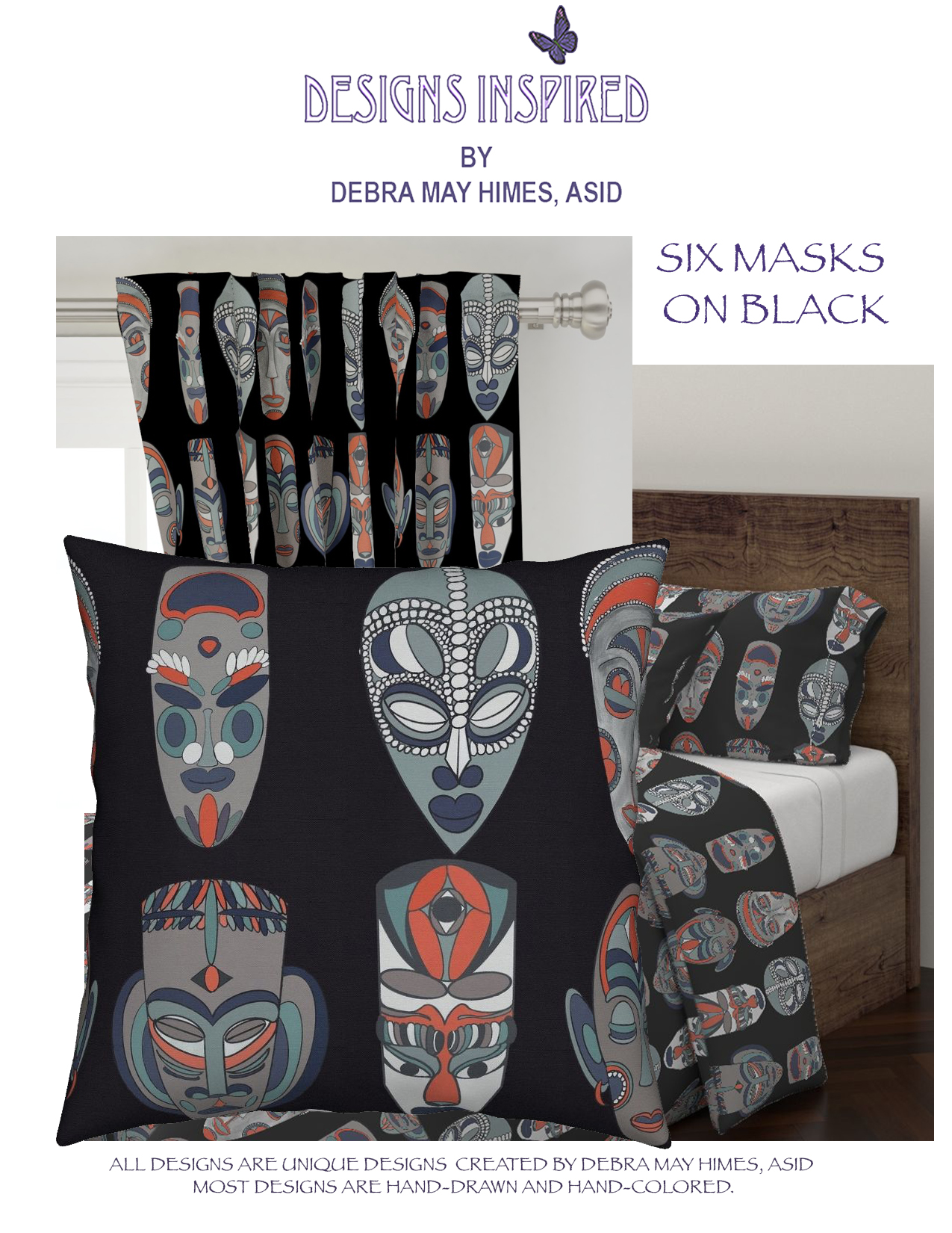 6 Masks on Black