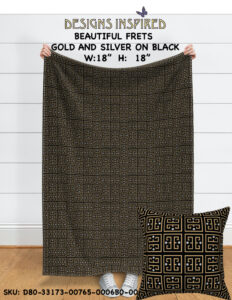 DEBRA MAY HIMES / Designs Inspired Fabric Catalog / BEAUTIFUL FRETS GOLD AND SILVER ON BLACK