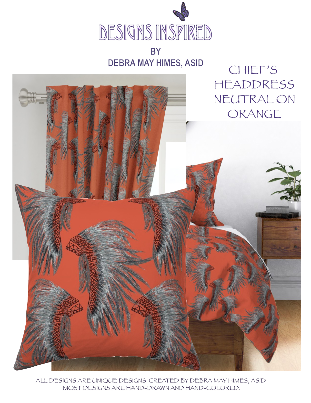 DEBRA MAY HIMES / Designs Inspired Fabric Catalog / CHIEF’S HEADDRESS NEUTRAL ON ORANGE