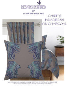 DEBRA MAY HIMES / Designs Inspired Fabric Catalog / CHIEF’S HEADRESS ON CHARCOAL